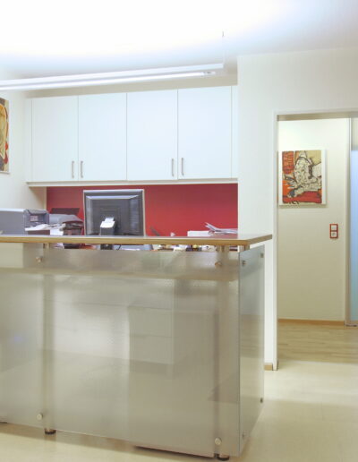 Die vier Infofelder Kontakt, Termine, Sprechzeiten und Aktuelles, können bei Bedarf auf drei reduziert werden, um eine präzisere und fokussiertere Darstellung zu ermöglichen.